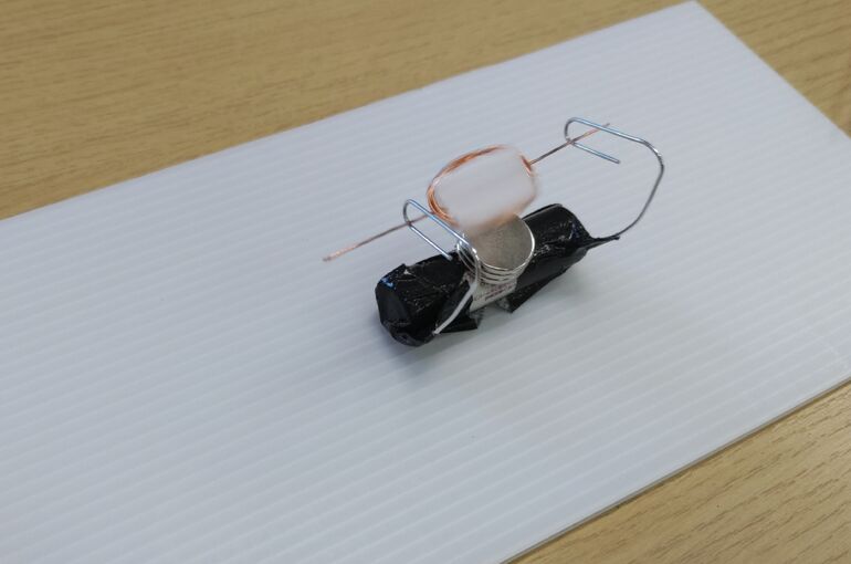 本題は、「電気自動車の原理に迫るー電池でモーターを作る」作業実験でした。 かなり難しく、苦心していましたが、8割の生徒さんが成功できました!