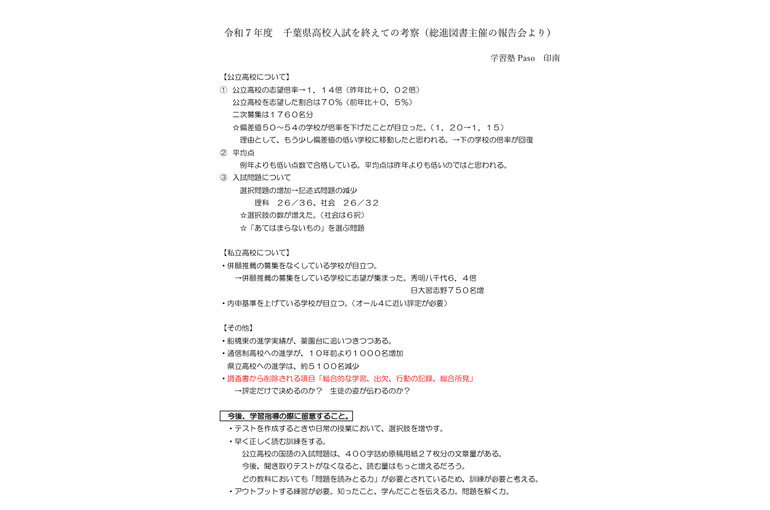 令和7年度千葉県高校入試を終えて