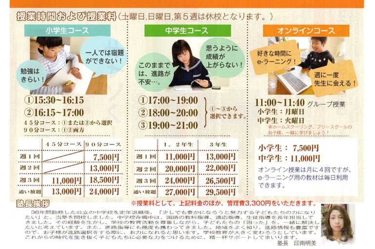 授業料改定について 2022/05/19 一年間の開校特別料金が終了し、 この度、授業料の見直しを行いました。 ご確認をお願いいたします。 掲載された料金の他、すべてのコースに 3,300円の管理費がかかりますので、よろしくお願いいたします。 お問い合わせをお待ちしております。 新着情報