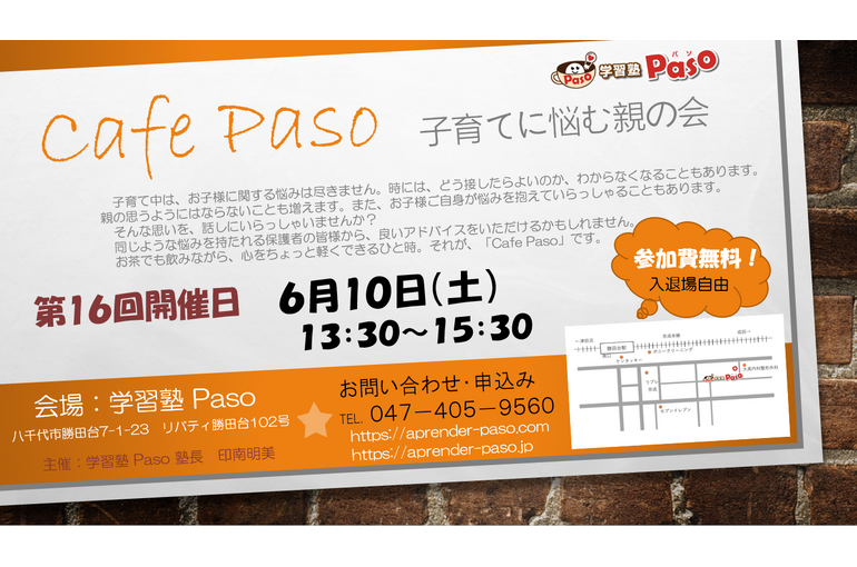 第16回 Cafe Paso(親の会)開催のお知らせ