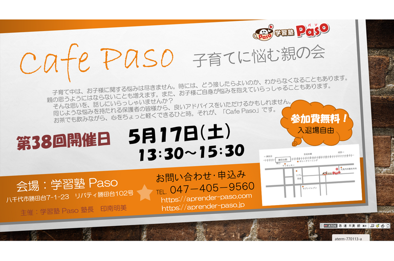 5月の親の会「Cafe Paso」 2025/05/06 G.Wが終わり、日常が戻ってまいります。 新学期を迎えて約一ヶ月。 やっと新しい生活に慣れた子どもたちにとって、この連休は振り出しに戻されてしまう感もあり、 体調を崩したり気持ちが落ち込んだりする子どもたちもいます。 お子様のご様子を、お話ししにいらっしゃいませんか? 5月の親の会は、第3土曜日となっております。 ご留意ください。 皆様のご参加をお待ちしております。 新着情報